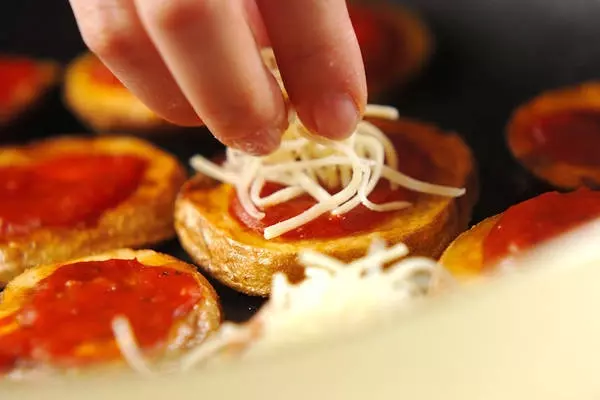 こちらのレシピは、ジャガイモを生地にして、ピザソースを塗り、チーズをのせてフライパンで焼いたら完成! とっても簡単に作れるので、お子さんと一緒に作ってみるのも楽しくていいですね。ジャガイモとチーズの鉄板コンビをピザソースで味付けしてあるので、失敗せずに味がキマるのも嬉しいところ。