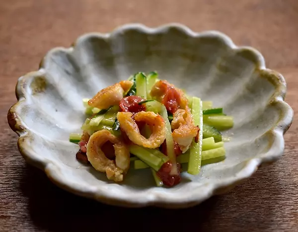 「鶏皮ときゅうりの和え物 梅にんにく風味」
