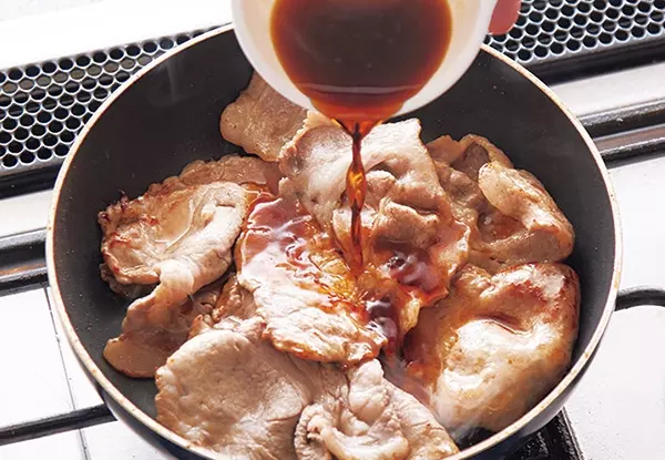 人がちょうどいいと感じる味つけの塩分濃度は、体液とほぼ同じ約1%。肉250gなら、しょうゆ・みりん・酒を各大さじ1(※)。調味料は加熱中に加えると蒸発したり焦げたりするので、必ず火を止めてから加えて混ぜ、再び火にかけて味をからめます。
