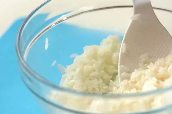 1、<すし飯>を作る。ボウルにご飯を広げ、寿司酢を全体にまわしかけ、切るように手早く混ぜる。