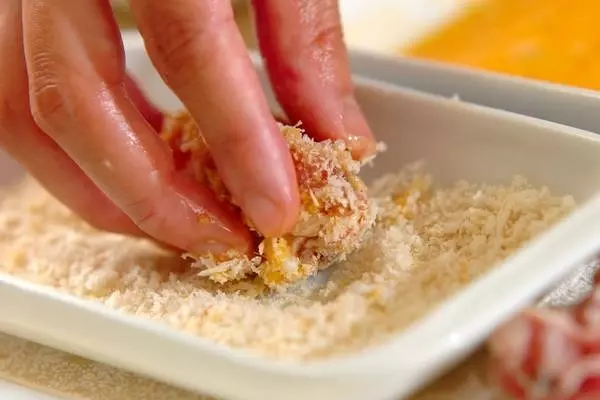 パン粉をつけてすぐに焼くと衣がとれやすいので、少し置いたほうがきれいに仕上がります。