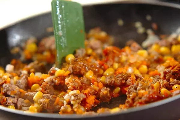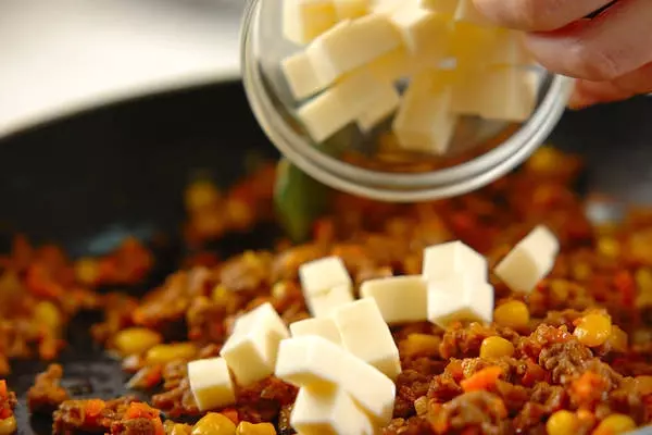 小さく切ったプロセスチーズは、ひき肉のコクと旨味が野菜と絶妙に絡み合ったおいしさがたまりません。
