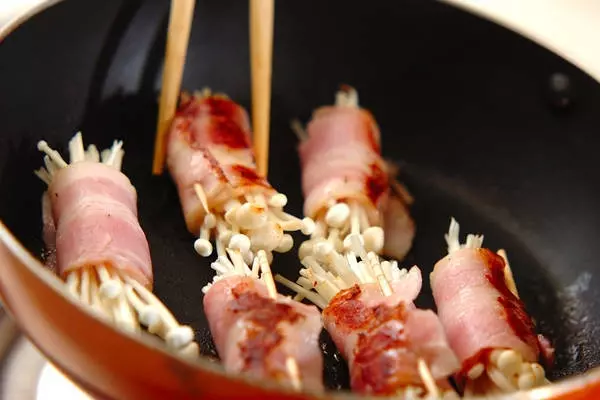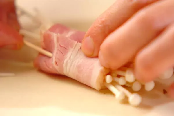 お弁当のおかずにぴったり! 簡単「エノキのベーコン巻き」