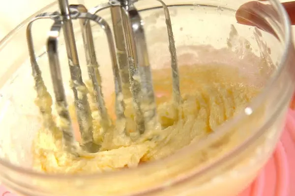 1、ボウルに無塩バターを入れて滑らかになるまで混ぜ、グラニュー糖を加えて白っぽくなるまですり混ぜる。