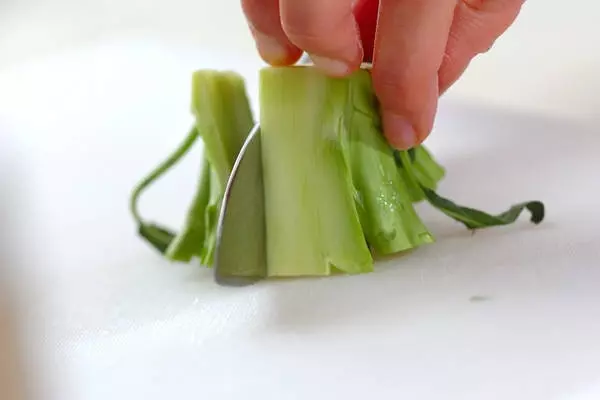 1、ブロッコリーは小房に分ける。軸の部分は皮をむき、粗いみじん切りにする。