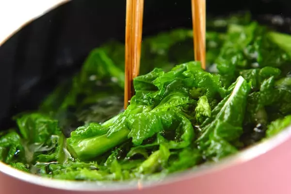 菜の花に含まれる栄養素は水に溶けやすいものが多いので、サッと短時間でゆでましょう。茎とつぼみを時間差でゆでるのがコツです。