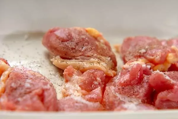 ・鶏もも肉は食べやすい大きさに切り、塩コショウを振る。