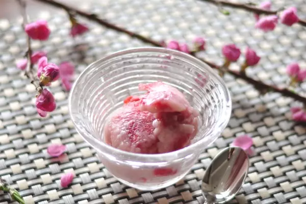 酒粕の甘酒ではなく、麹で作る甘酒を使っているのでアルコールはゼロ。お子さんでも食べられますし、きれいなピンク色で春らしさも満喫できますよ。