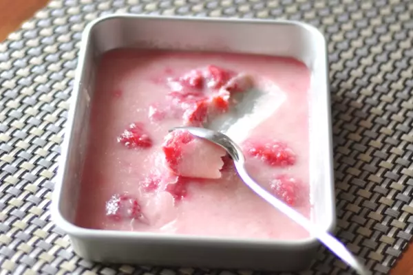 今回は甘酒にいちご、レモン汁を混ぜてシャーベットに。