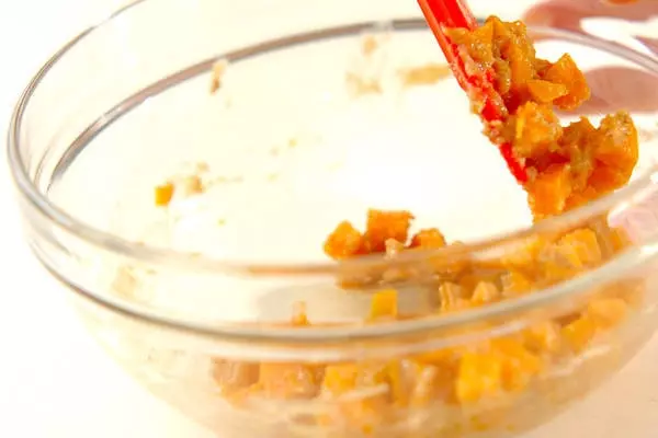 3、(1)のカボチャを(2)に加えてよく和え、器に盛る。