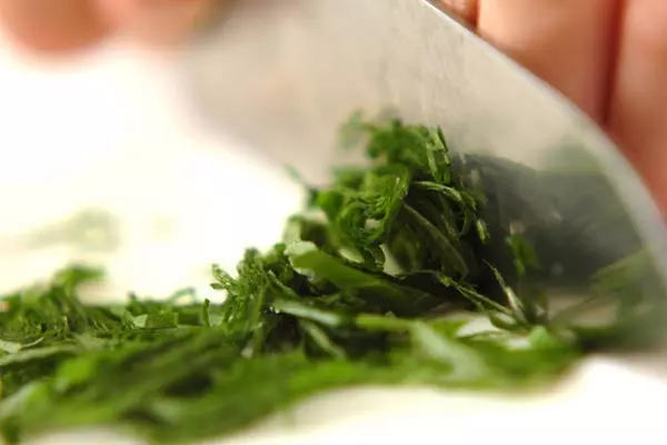 1、<調味料>の材料を混ぜ合わせておく。大葉は軸を切り取り、細切りにする。