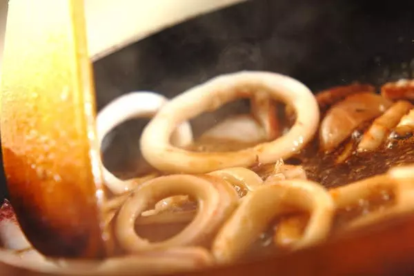 柔らかく風味のあるイカを、甘辛いタレで炒めた一品は、しっかりとした味付けで、白ごはんやお酒との相性も抜群です。
