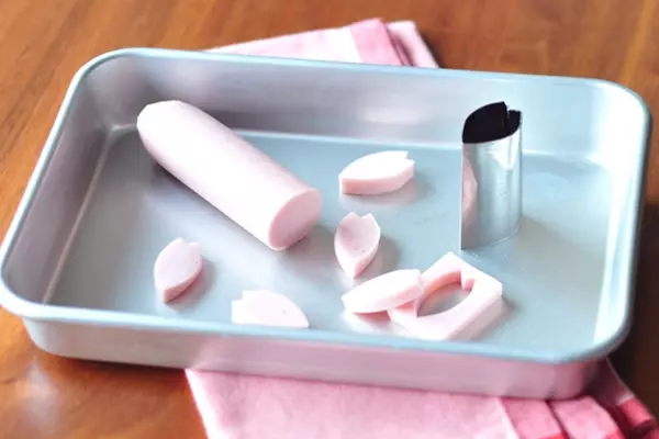 5、魚肉ソーセージは薄切りにし、型抜きで抜く。