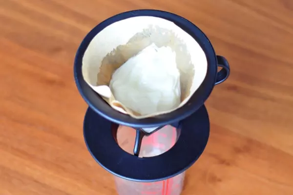 ヨーグルトは水切りヨーグルトにして水分量を減らします。私はコーヒーフィルターを使って水切りを。これにごまを混ぜてから、ひじきの煮物を合わせます。