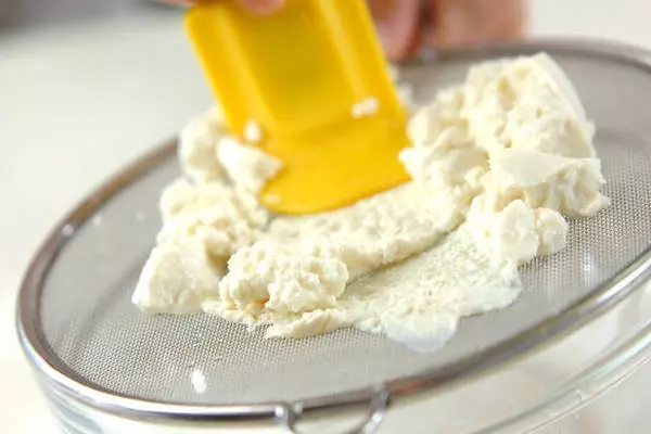 ・豆腐はキッチンペーパーに包み、耐熱容器にのせて電子レンジで1分30秒加熱し、水気をしっかりきって網でうらごす。電子レンジは600Wを使用しています。