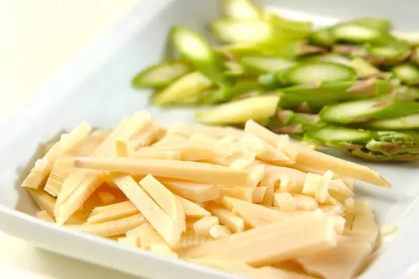 具は水煮タケノコとグリーンアスパラの2つだけ。簡単に用意できる嬉しいレシピです。