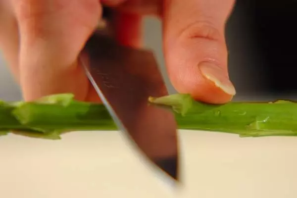 ・グリーンアスパラは根元のかたい部分を切り落とし、かたい皮とハカマを取り除いてゆで、4~5等分に切る。