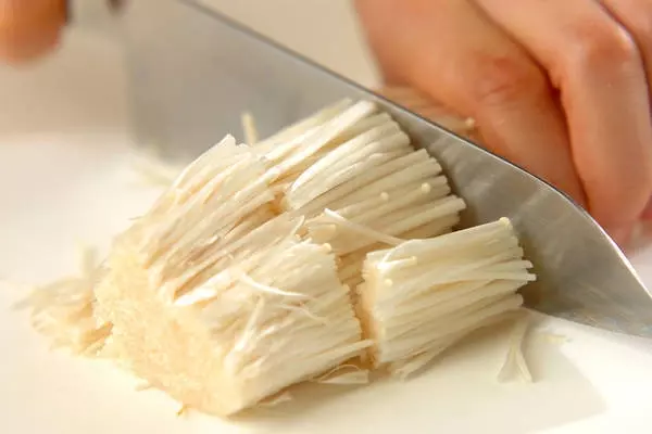 ・エノキはサッと水洗いして根元を切り落とし、長さを3等分に切り、根元をほぐす。
