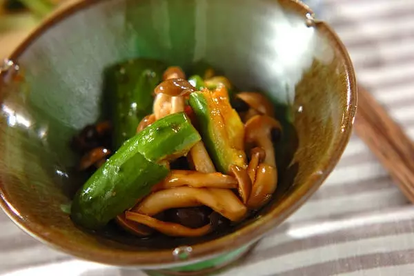 キュウリにしょうゆとラー油を加えて、ピリッと辛く中華風にアレンジした一皿。キュウリを叩くことで、味がしっかり染み込み、やみつきになるおいしさです。シメジの旨味も楽しめ、ごはんのおともにすれば、食欲がないときにもたくさん食べることができそう!