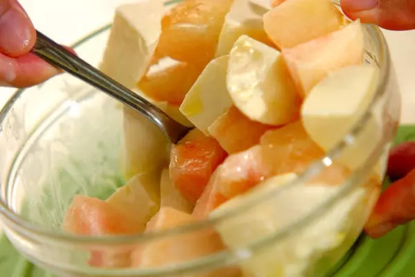 桃は色が変わりやすいため、レモン汁と和えることで、桃の変色を防いでくれますよ。