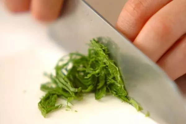 ・ボウルで<調味料>、<合わせだし>の材料をそれぞれ合わせておく。大葉は軸を切り落とし、細切りにする。
