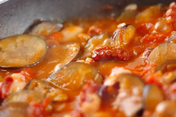 フライパン1つで簡単! おつまみにも最適な「タコとナスのトマト煮」