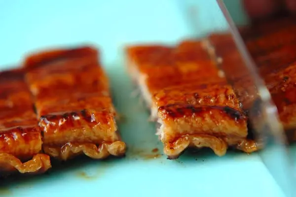 ・ウナギ蒲焼きは頭を切り落とし、幅2cmに切る。