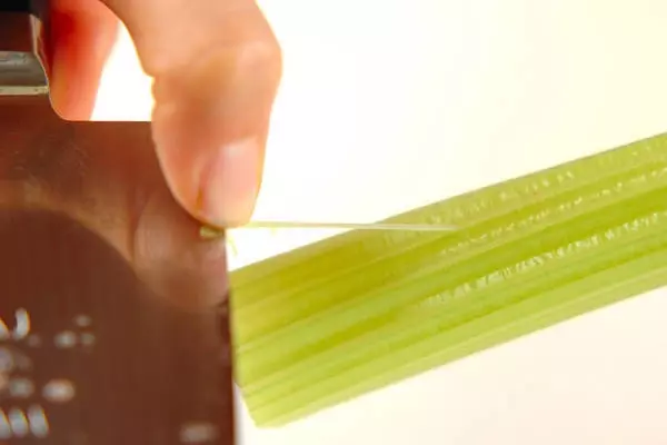 ・セロリは筋を引き、斜め薄切りにする。