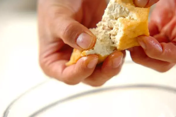 ・厚揚げは熱湯をかけて表面の油を落とし、手でひとくち大にちぎる。
