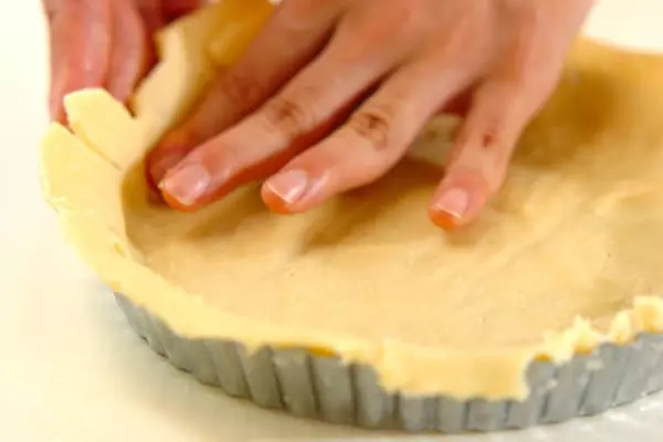 6、(2)の<タルト生地>を厚さ約3~4mmにのばし、タルト型に敷く。