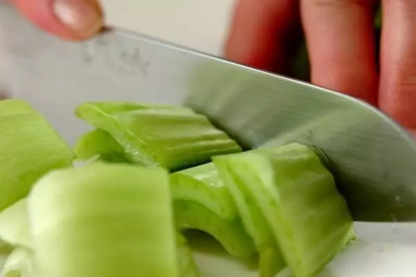 ・チンゲンサイは根元を少し切り落とし、長さ3~4cmに切る。根元の部分は切り込みを入れ、食べやすい大きさに裂く。