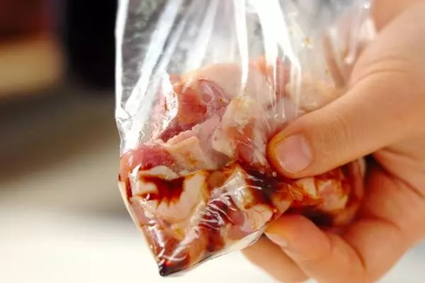 ・お米を炊く30分以上前に水洗いしてザルに上げておく。鶏もも肉は2cmの角切りにして、しょうゆと酒をからめる。