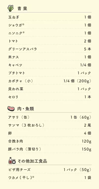 ※購入しやすい分量で記載しています。実際使用する分量とは異なりますのでご注意ください。