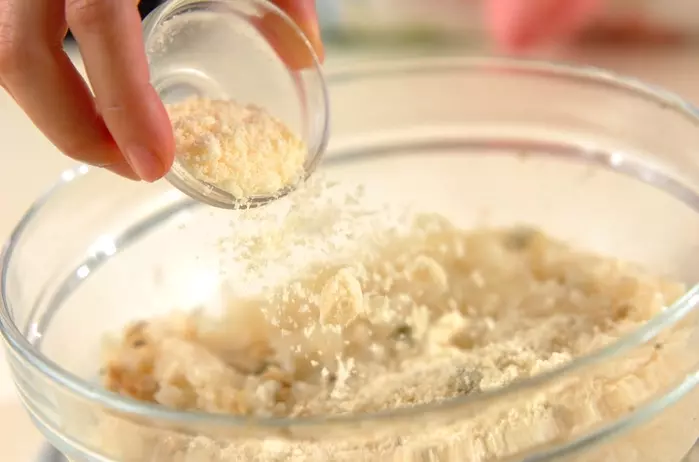 粉チーズ 大さじ2 を加えて混ぜ、塩コショウ 少々 で味を調えて器に盛る。あれば イタリアンパセリ 適量 を飾る。電子レンジは600Wを使用しています。