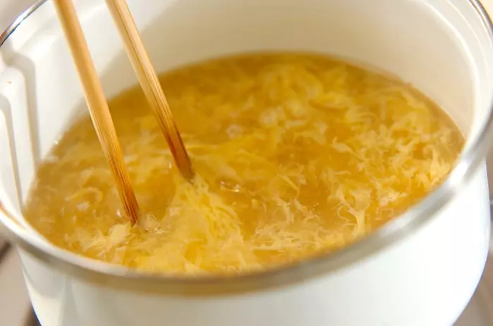 4、<レタスとふわふわ卵のスープの工程>