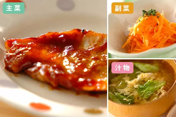 簡単レシピを3品組み合わせた献立です。材料も工程も少なく、お手軽なので時間がない日にオススメです。