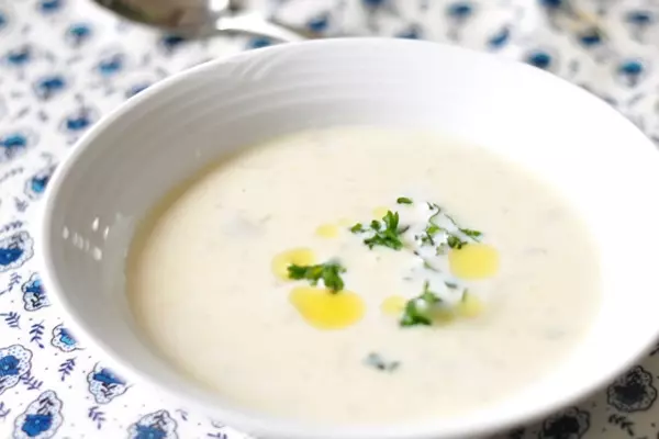 3、塩で味を調え、器に盛ってオリーブ油をかける。
