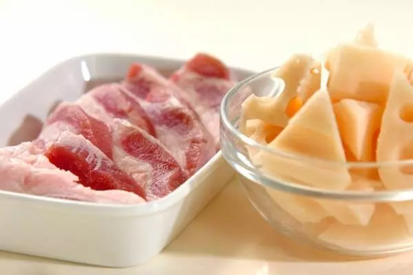 ・豚バラ肉は厚さ7~8mmに切り、塩をまぶす。レンコンは皮をむいてひとくち大の乱切りにする。