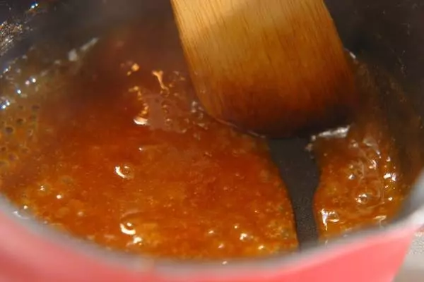 1、小鍋に<みそダレ>の材料を入れ、混ぜ合わせながら中火にかける。煮たったら弱火にし、トロミがついたら火を止めて小皿に移す。