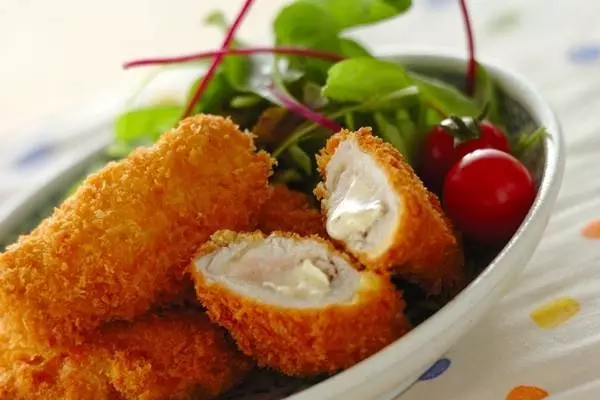 ヘルシーな鶏むね肉で作る「カマンベールチーズのチキンカツ」。