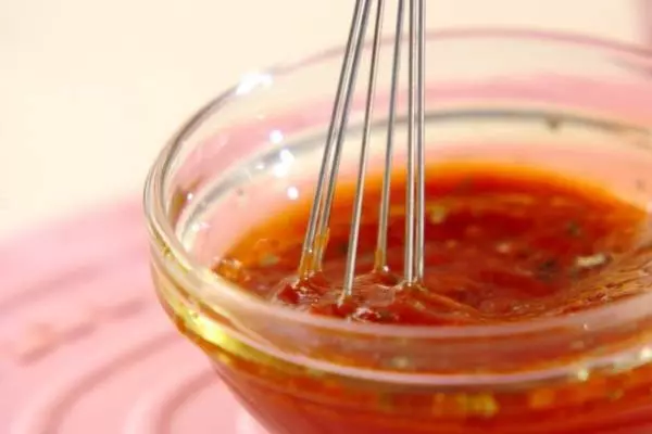 5、<トマトソース>を作る。ボウルに<トマトソース>の材料を全て入れ、混ぜ合わせる。