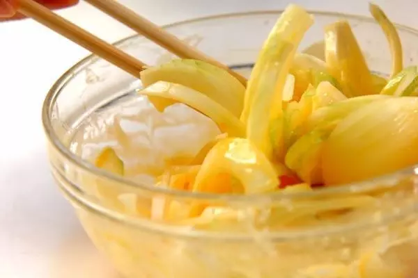 1、セロリは筋を取り除いて薄切りに、玉ネギは幅5mmに切る。ボウルに卵を割り入れ、溶きほぐしておく