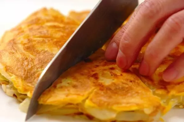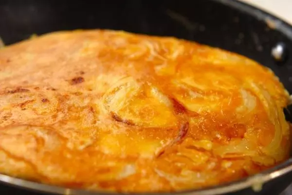 4、蓋をして中火でキツネ色になるまで焼く。皿やフライパンの蓋を使ってひっくり返す。もう片面もキツネ色になるまで焼く。