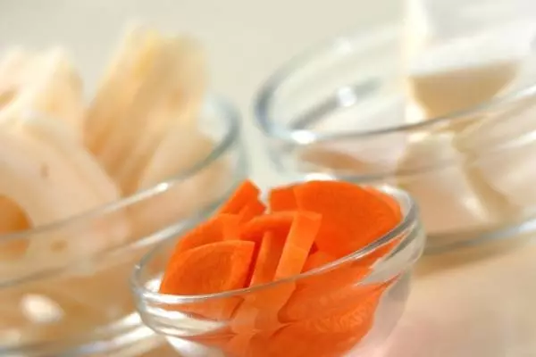 ・ニンジンとレンコンは皮をむき、厚さ3~5mmのイチョウ切りにする。カブは皮をむいて乱切りにする。<水溶き片栗>の材料を混ぜ合わせる。