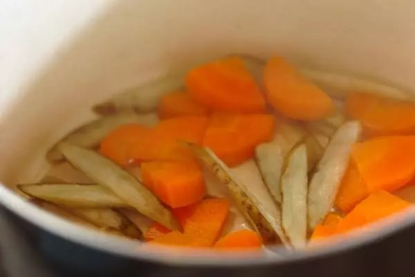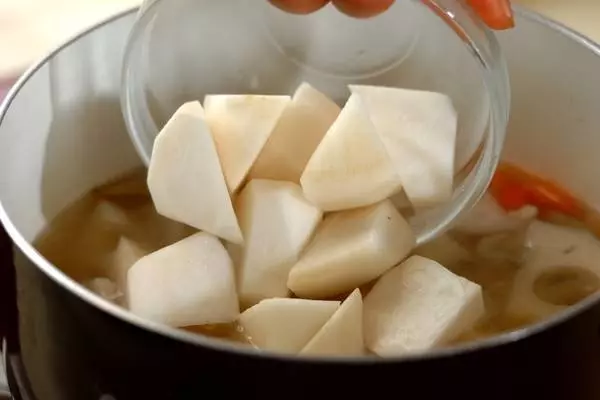 ひと手間ですが、この作業によってかたい根菜に味がしみこみやすくなります。
