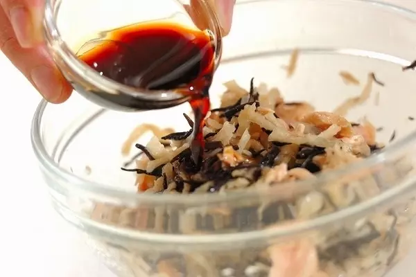 1、熱湯で切干し大根と芽ヒジキをゆで、ザルに上げて水気をきってボウルに移す。