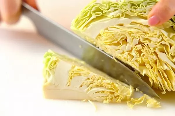 ・キャベツは芯を取り除き、ひとくち大に切る。