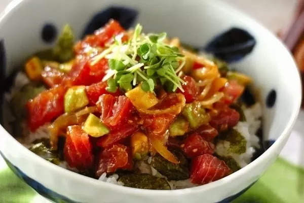 和えてご飯に乗せるだけ「簡単!マグロとアボカドのハワイ風アヒポキ丼」