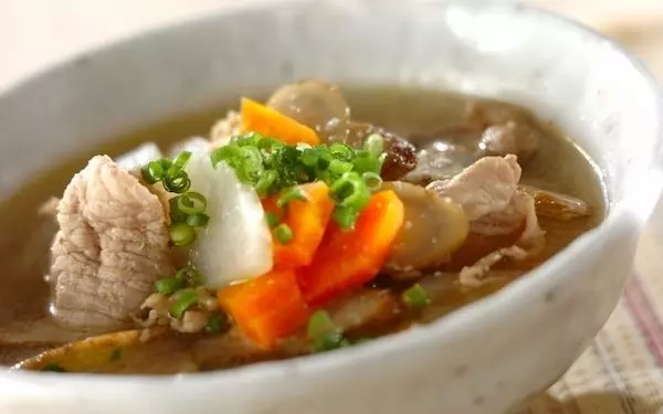 作り方は、鍋に分量外のサラダ油をひき、中火で豚肉を炒めます。半分ほど火が通ったら、大根、ニンジン、ゴボウを加えサッと炒めましょう。続いて、だし汁を加え、野菜に火が通るまで中火で煮ます。途中、アクを取り、塩麹を加え、1~2分ほど煮れば完成です。器に注ぎ、お好みでネギをのせたり、七味唐辛子を振りましょう。