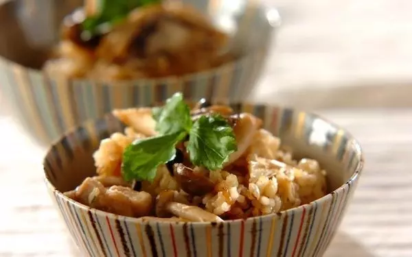 ■βグルカンがたっぷり! もち麦入りキノコの炊き込みご飯